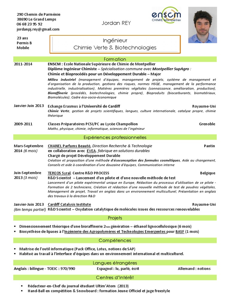 Cv jordan rey ingenieur chimie verte biotechnologie ingenieur - www.scribd.com