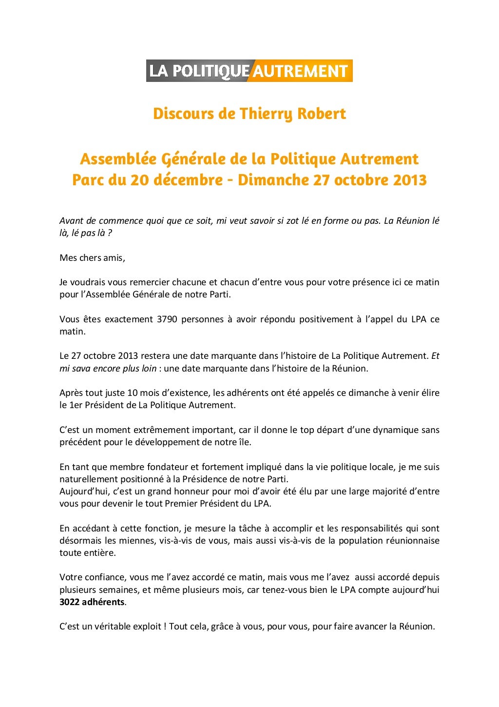 Discours de thierry robert assemblee generale de la politique autreme - fr.slideshare.net |